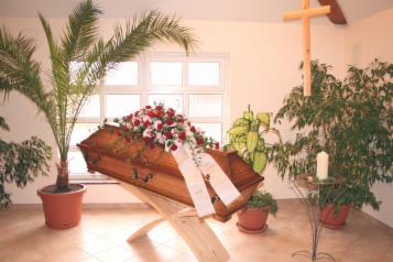 Eine Feierhalle ermöglicht Trauerfeiern in unserem Hause für bis zu 40 Personen ebenso, wie würdevolle Abschiednahmen am offenen Sarg.